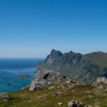 At the summit, you will be rewarded with stunning panoramic views. To the west, the majestic peak of Himmeltindan dominates the skyline, while below you, the deep blue fjords and open landscapes of Vestvågøy stretch out in every direction. This is the perfect place to take a break, enjoy a snack, and soak in the beauty of Lofoten.